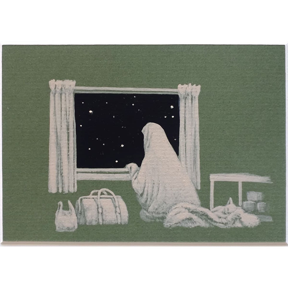 (額縁用マットの切れ端に描いた作品です。やや厚みがあります)